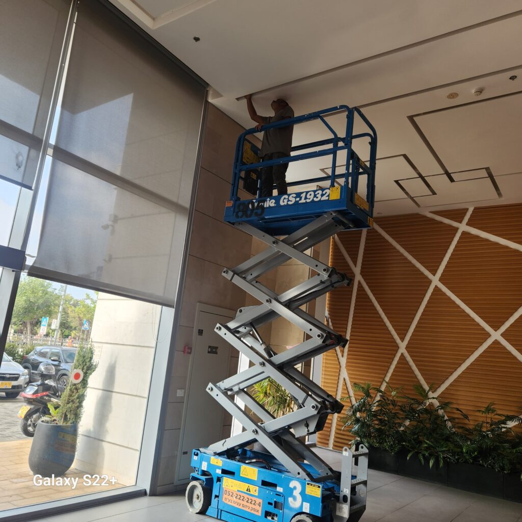 במת מספריים מתאימה כשעובדים על רצפה ישרה, כמו מחסנים, אולמות, מבני תעשייה או חניונים, וכשצריך משטח עבודה יציב להרמת עובד או שניים יחד עם ציוד קל עד בינוני.